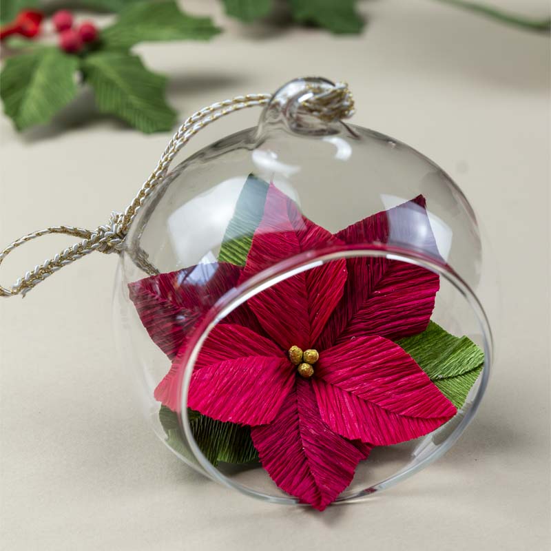 Cette année, vous avez envie de changer un peu votre déco pour les fêtes ? Apportez une touche florale à vos sapins avec nos boules de Noël. A l’intérieur, une poinsettia en papier, aussi connue comme l’Étoile de Noël. Rien de plus symbolique et chaleureux.